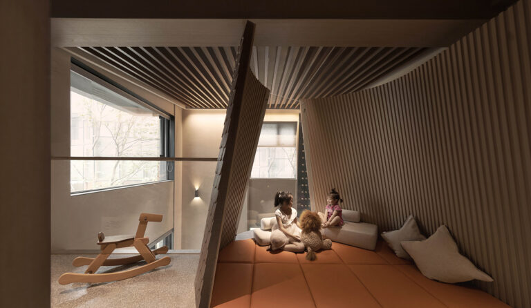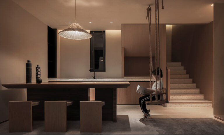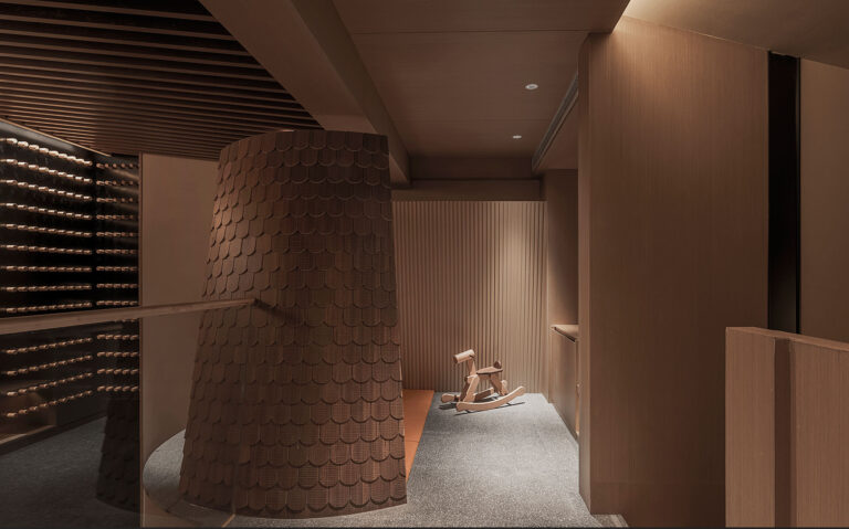 In the survey of the designer’s design process, the lion is the most popular theme IP for children, because in the media, the lion has always been regarded as the synonym of courage, courage is the courage to challenge all difficulties. The main materials of the theme parent-child home stay are mainly selected in line with the characteristics of the lion theme: beige texture paint and wood finishes. In addition, a wooden house, swing, wooden horse and a small climbing wall with a symbol of courage are set in the space as the parent-child interaction elements. Parents and children can tell stories and imagine the vivid and interesting Simba Kingdom in the lion theme home stay in the wooden house.